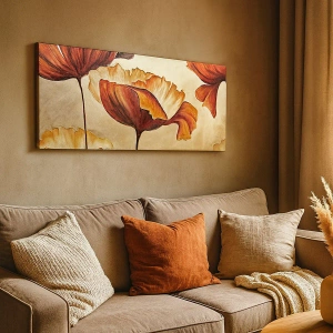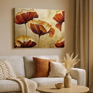 Impression sur toile - Image sur toile - Fleurs subtiles dans des tons de rouge et d'or sur un fond clair - 50x70cm - À la lisière des champs - Décoration murale moderne pour le salon et la chambre ARTTOR