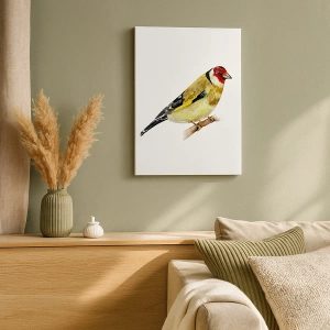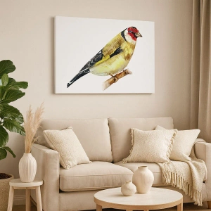 Impression sur toile - Image sur toile - Un oiseau à tête rouge sur une branche - 50x70cm - Portrait d'oiseau - Décoration murale moderne pour le salon et la chambre ARTTOR