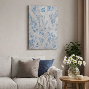 Impression sur toile - Image sur toile - Motifs géométriques dans les tons de bleu et de gris - 50x70cm - Dans un labyrinthe bleu-gris - Décoration murale moderne pour le salon et la chambre ARTTOR