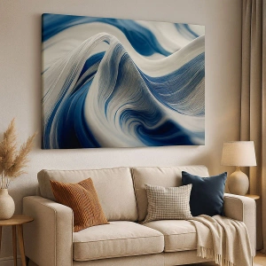 Impression sur toile - Image sur toile - La fluidité du bleu et du blanc - 100x40 cm