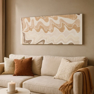 • Ce tableau représente des lignes abstraites fluides dans des tons beiges. Une décoration subtile et harmonieuse qui apporte élégance et sérénité à tout intérieur.