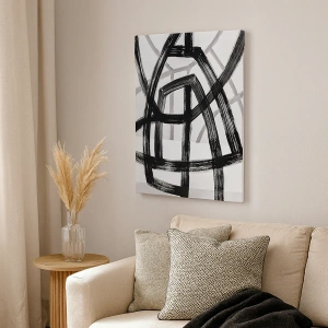 - Une peinture abstraite représentant des lignes noires et blanches se croisant sur un fond clair. Un motif minimaliste et moderne, parfait pour les intérieurs, apportant clarté et harmonie à un espace. Une décoration idéale pour les amateurs d'art conte...