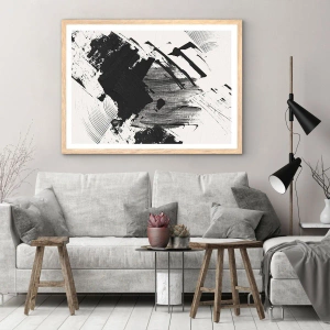 Affiche dans un chêne clair - Poster - Abstraction – expression du noir - 91x61 cm