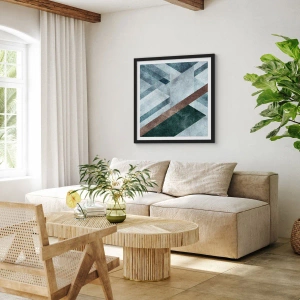 Affiche dans un cadre noir - Poster - Composition géométrique dans les tons de bleu et de marron - 50x70cm - Élégance sophistiquée de la géométrie - Décoration murale moderne pour le salon et la chambre ARTTOR