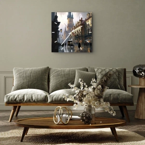 Horloge murale - Pendule murale - Promenade nocturne dans le centre historique de la ville - 30x30cm - Le charme d'une soirée pragoise - Décoration murale moderne pour le salon, la cuisine et la chambre ARTTOR