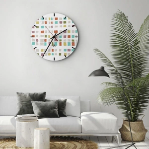 Horloge murale - Jeu inconnu - Carrés colorés sur fond blanc dans un style abstrait