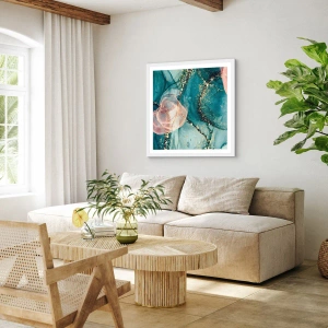 Affiche dans un cadre blanc - Poster - Soie bleu, tulle rose - 61x91 cm