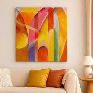 Impression sur toile - Image sur toile - Une composition abstraite pleine de formes géométriques colorées. - 70x50cm - Cathédrale du soleil - Décoration murale moderne pour le salon et la chambre ARTTOR