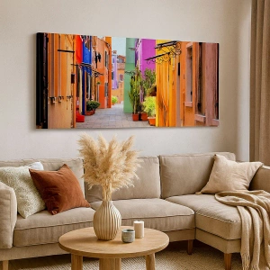 Impression sur toile - Image sur toile - Une rue colorée avec des immeubles aux tons clairs - 50x70cm - Allée arc-en-ciel - Décoration murale moderne pour le salon et la chambre ARTTOR