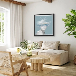Affiche dans un cadre noir - Poster - Portrait d'une femme avec son visage caché derrière les nuages et les vagues - 70x50cm - La tête dans les nuages - Décoration murale moderne pour le salon et la chambre ARTTOR