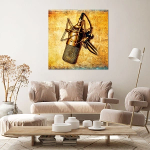 Les nuances chaudes et dorées et la texture artistique du fond confèrent à ce tableau un caractère unique. Le microphone symbolise l'art du son, créant une atmosphère inspirante aussi bien dans un salon que dans un studio professionnel. Idéal pour les musiciens, les chanteurs et les passionnés d'audio.