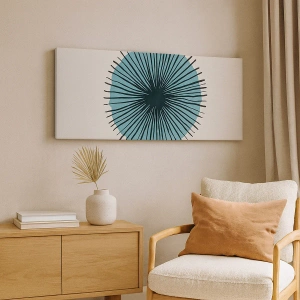 - Le tableau représente une forme circulaire abstraite aux rayons bleus. Son design minimaliste est idéal pour les intérieurs modernes.