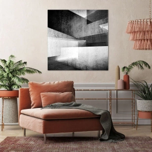 Structure de l'espace est une peinture sur toile unique qui allie sobriété des formes et raffinement esthétique. La composition monochrome de formes géométriques fait référence à l'architecture contemporaine et à l'art moderne, créant un jeu d'ombres et de lumières saisissant. Grâce à son approche minimaliste, ce tableau s'intègre parfaitement dans les intérieurs modernes.