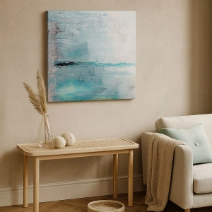 • Cette toile imprimée de 70 x 50 cm représente une composition abstraite aux tons turquoise et gris. Parfaite pour les intérieurs modernes et harmonieux.