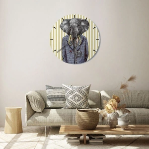 Horloge murale - Pendule murale - Un éléphant en costume sur fond de rayures beiges - 30x30cm - Élégant par nature - Décoration murale moderne pour le salon et la chambre ARTTOR