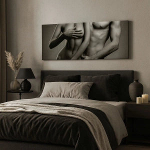 Impression sur toile - Image sur toile - Représentation en noir et blanc de corps féminins et masculins dans une pose artistique - 70x100cm - Adam et Eve - Décoration murale moderne pour le salon et la chambre ARTTOR