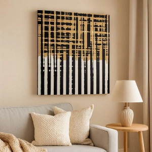 Impression sur toile - Image sur toile - Lignes abstraites en noir, beige et blanc - 50x70cm - Abstraction architecturale - Décoration murale moderne pour le salon et la chambre ARTTOR