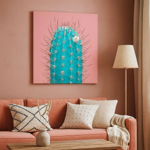Le motif du cactus, symbole de résilience et d'harmonie avec la nature, apporte légèreté et exotisme aux intérieurs. Son vert luxuriant contraste avec le fond rose délicat, créant une combinaison esthétique qui attire le regard. Le tableau s'intègre parfaitement aux pièces lumineuses et spacieuses, leur apportant un caractère distinctif.