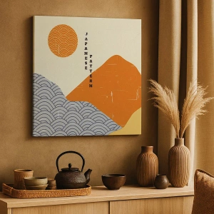 Impression sur toile - Image sur toile - Motifs japonais avec montagnes, soleil et style minimaliste - 50x70cm - Dans l'esprit japonais - Décoration murale moderne pour le salon et la chambre ARTTOR