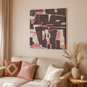 • Collage, Antiquités, Art, Abstractions, Pour le bureau, Pour le bureau, Pour la salle à manger, Pour le hall, Pour le salon, Pour la chambre, Blanc, marron, rose, Carré