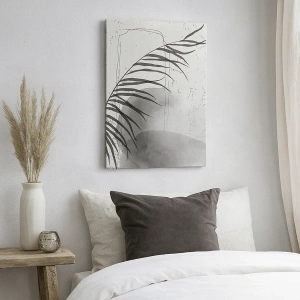 Impression sur toile - Image sur toile - Un délicat motif de feuille de palmier sur un fond clair dans un style scandinave. - 100x70cm - L'exotisme subtil de la nature - Décoration murale moderne pour le salon et la chambre ARTTOR