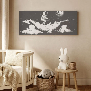 Impression sur toile - Image sur toile - Un astronaute sur le dos d'un narval flottant dans une scène spatiale. - 100x70cm - Cavalier de l'espace - Décoration murale moderne pour le salon et la chambre ARTTOR