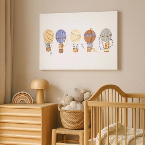 Impression sur toile - Image sur toile - Animaux mignons dans des ballons sur fond blanc - 70x50cm - Compagnons de voyage - Décoration murale moderne pour le salon et la chambre ARTTOR