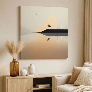 Impression sur toile - Image sur toile - Un oiseau sur une île dans un lac calme aux teintes chaudes - 50x70cm - Le seigneur du lac - Décoration murale moderne pour le salon et la chambre ARTTOR