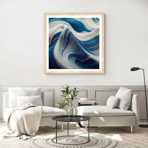 Affiche dans un chêne clair - Poster - La fluidité du bleu et du blanc - 50x70 cm