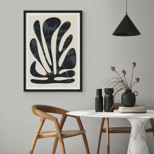 - Cette affiche représente une forme végétale abstraite noire sur fond beige. Son minimalisme moderne et son harmonie géométrique en font une décoration idéale pour les intérieurs élégants.