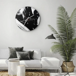 L'horloge est produite avec un verre de sécurité de 4 mm d'épaisseur. La technologie de fabrication de l'horloge est conforme à la classe de sécurité 2B2 selon la norme PN-EN 12600 : 2004, qui garantit la résistance aux chocs. L'horloge en verre est prête à être accrochée - elle a une attache en métal attaché à l'arrière et une entretoise en mousse régulant la distance uniformément de l'horloge par rapport au mur. L'horloge a un mécanisme flottant silencieux alimenté par une pile 1.5V - pile AA (pile non incluse).
