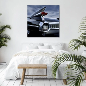 Impression sur toile - Image sur toile - Une voiture rétro classique avec du chrome brillant et des ailerons - 100x70cm - C'est exactement pourquoi c'est beau ! - Décoration murale moderne pour le salon et la chambre ARTTOR