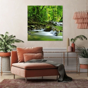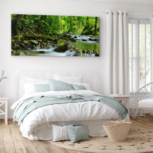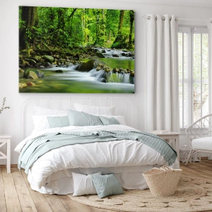 • Ce tableau représente un ruisseau dans une forêt tropicale luxuriante. Idéal pour les intérieurs inspirés de la nature, il crée une atmosphère de paix et de détente.