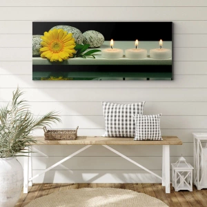 Impression sur toile - Image sur toile - Fleur jaune, bougies et pierres sur fond d'eau - 120x80cm - Apaisement des sens - Décoration murale moderne pour le salon et la chambre ARTTOR