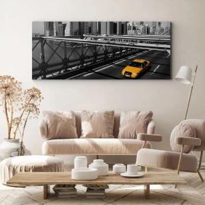 Impression sur toile - Image sur toile - Taxi jaune sur un pont avec vue sur les toits de New York - 120x80cm - Couleur de la grande ville - Décoration murale moderne pour le salon et la chambre ARTTOR