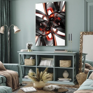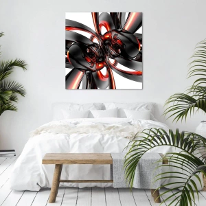 - Ce tableau présente des graphismes 3D abstraits aux dominantes noires et rouges. Son design moderne et ses formes géométriques confèrent à l'intérieur une touche futuriste.