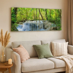 Impression sur toile - Image sur toile - Une cascade parmi des arbres verts avec de l'eau bleue dans un cadre naturel - 120x80cm - Se noyer dans le turquoise et le vert - Décoration murale moderne pour le salon et la chambre ARTTOR