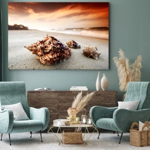 Impression sur toile - Image sur toile - Coquillages sur la plage au coucher du soleil - 100x70cm - Les parias des vagues - Décoration murale moderne pour le salon et la chambre ARTTOR