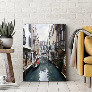 Impression sur toile - Image sur toile - Paysage vénitien avec une gondole et un pont - 45x80 cm