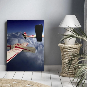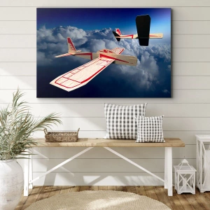 Impression sur toile - Image sur toile - Deux avions en bois planant au-dessus des nuages contre un ciel bleu. - 100x70cm - Encore plus haut, encore plus loin - Décoration murale moderne pour le salon et la chambre ARTTOR