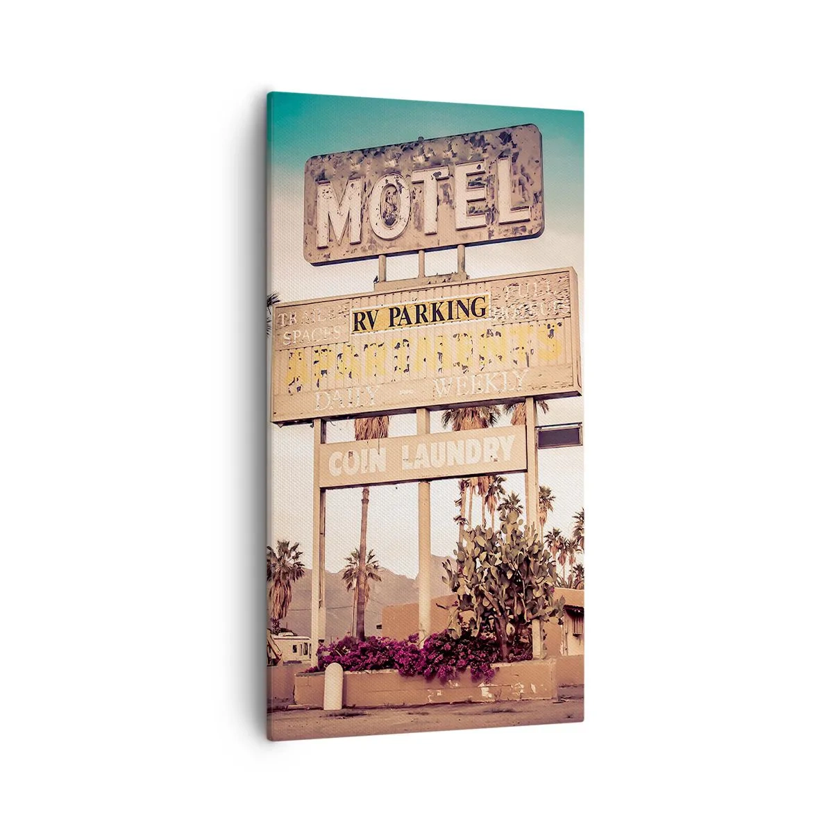 La toile est tendue sur un cadre. Les côtés et les bords sont imprimés en continuation de l'image. Le tableau est prêt à être accroché au mur. Chaque produit dispose d'une attache fixée au cadre et d'un kit de montage (vis + cheville).