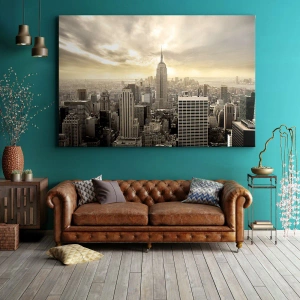 Impression sur toile - Image sur toile - Panorama de la ville avec vue sur l'Empire State Building - 120x50cm - New York tissé de gris - Décoration murale moderne pour le salon et la chambre ARTTOR