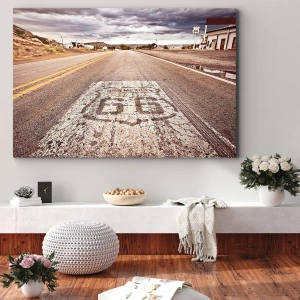 Impression sur toile - Image sur toile - Route 66 dans un climat désertique avec un ciel pittoresque - 120x80cm - Mother Road - une légende américaine - Décoration murale moderne pour le salon et la chambre ARTTOR