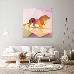 Impression sur toile - Image sur toile - Silhouette géométrique d'un lion dans les tons jaune et orange - 120x80cm - Le roi du diamant - Décoration murale moderne pour le salon et la chambre ARTTOR