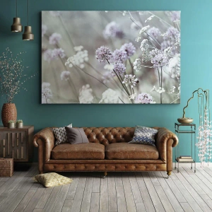 Impression sur toile - Image sur toile - Fleurs délicates aux tons pastel - 100x70cm - Herbes douces en filigrane - Décoration murale moderne pour le salon et la chambre ARTTOR