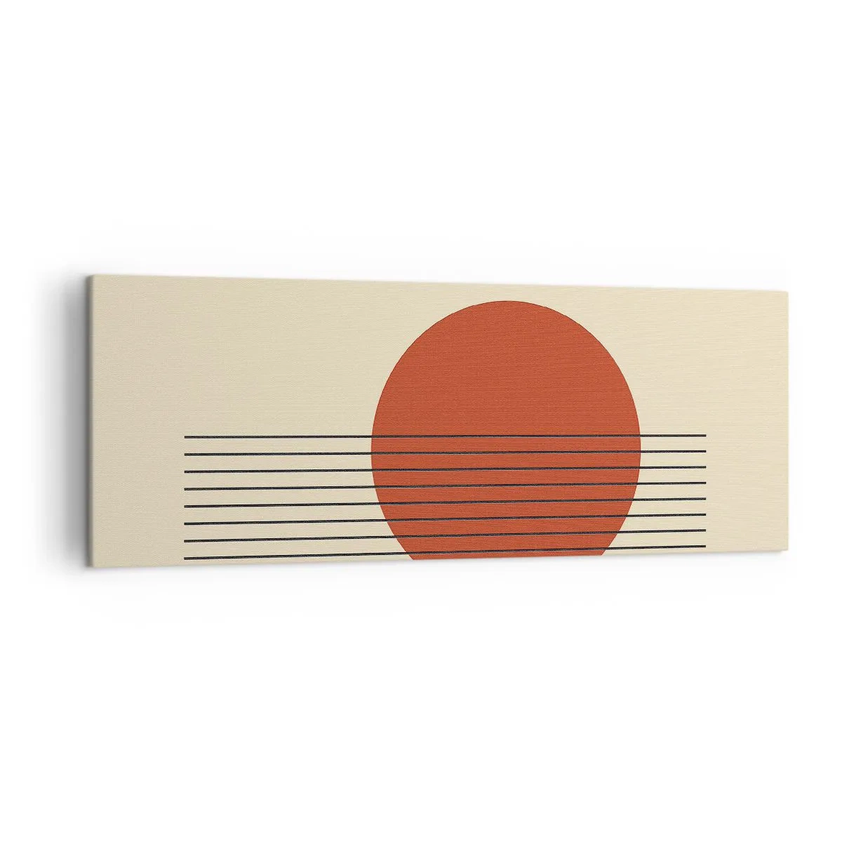 Impression sur toile - Image sur toile - Cercle rouge abstrait avec des lignes sur fond beige. - 140x50cm - Aux alentours et plus loin - Décoration murale moderne pour le salon et la chambre ARTTOR