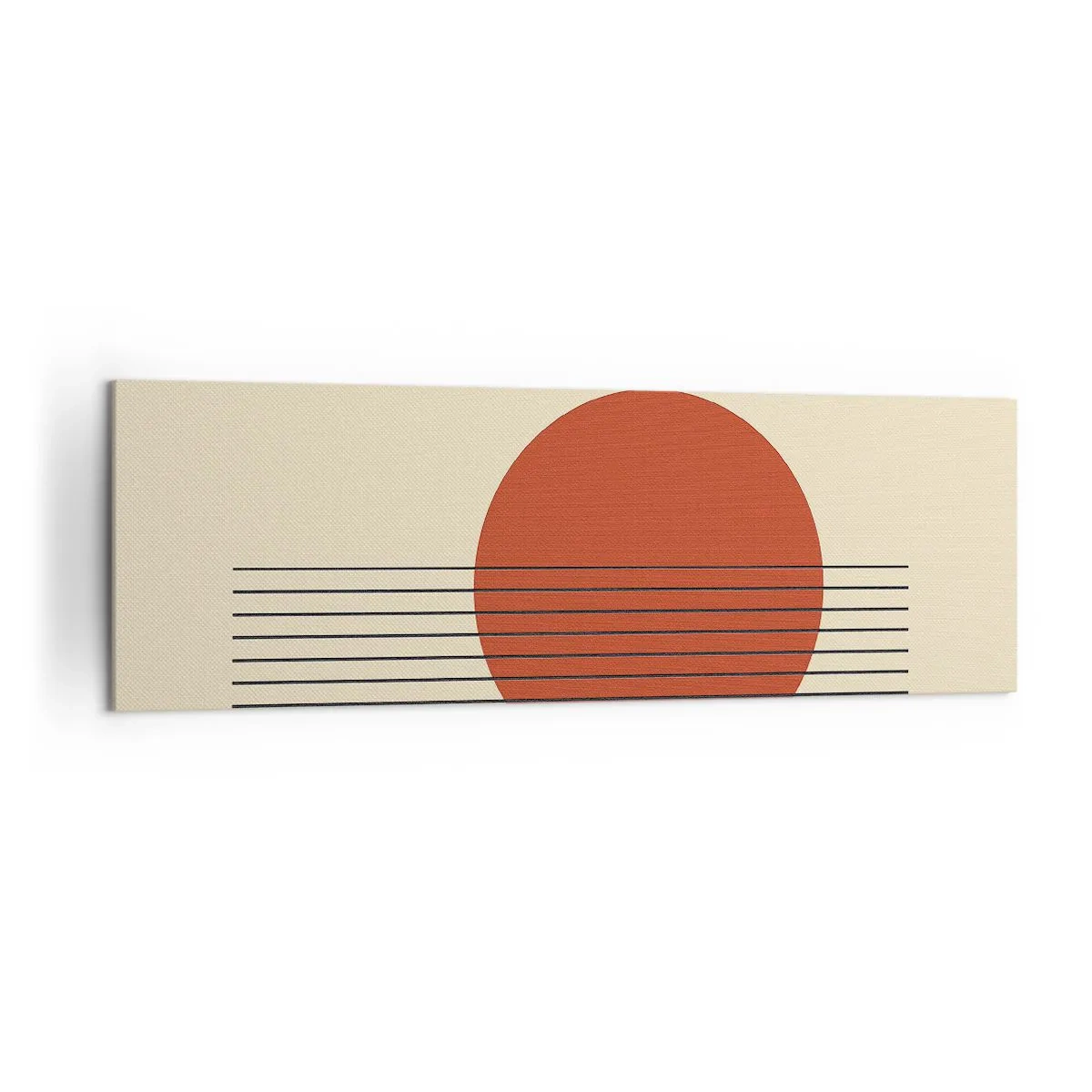 Impression sur toile - Image sur toile - Cercle rouge abstrait avec des lignes sur fond beige. - 160x50cm - Aux alentours et plus loin - Décoration murale moderne pour le salon et la chambre ARTTOR