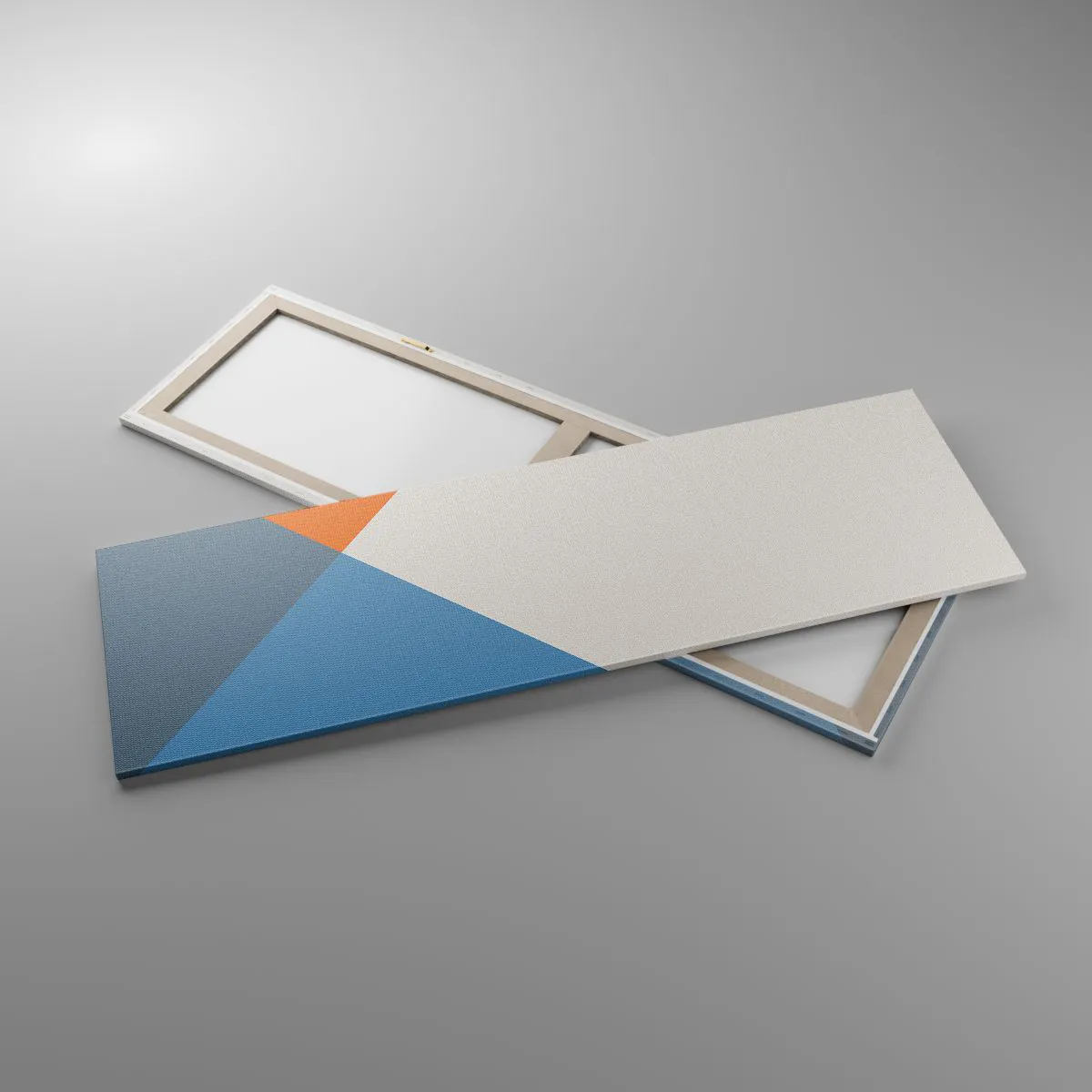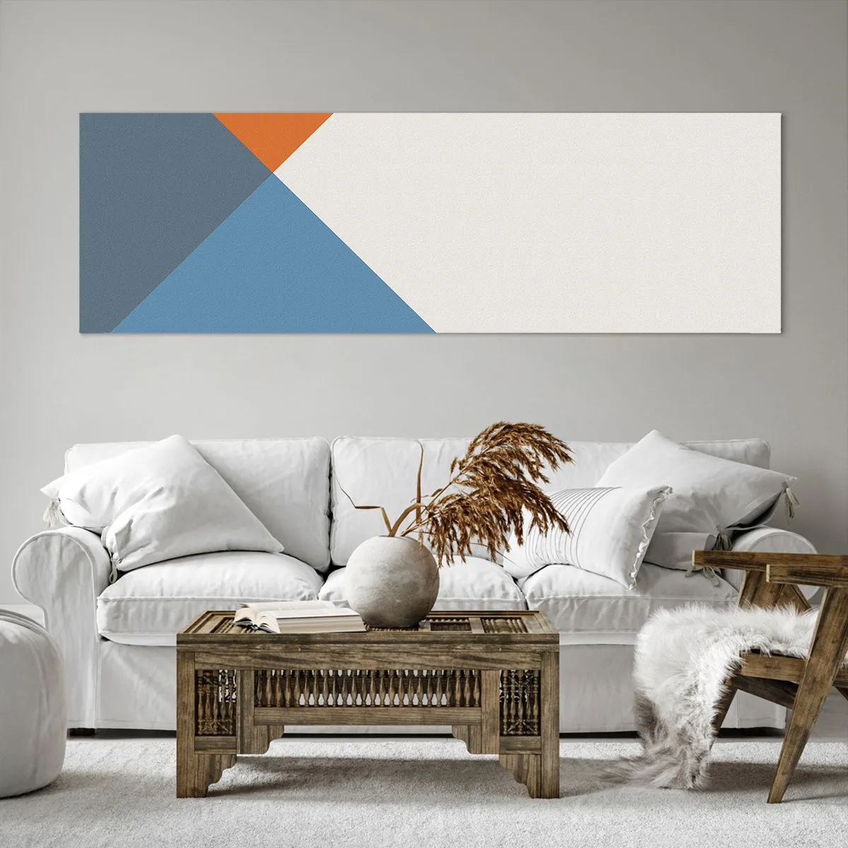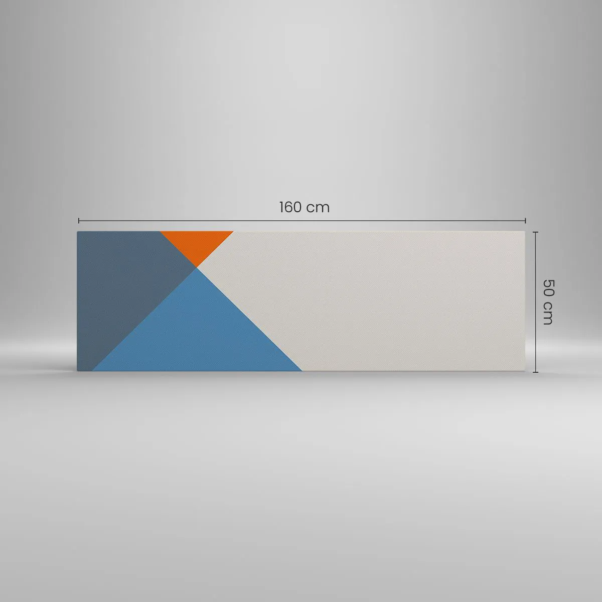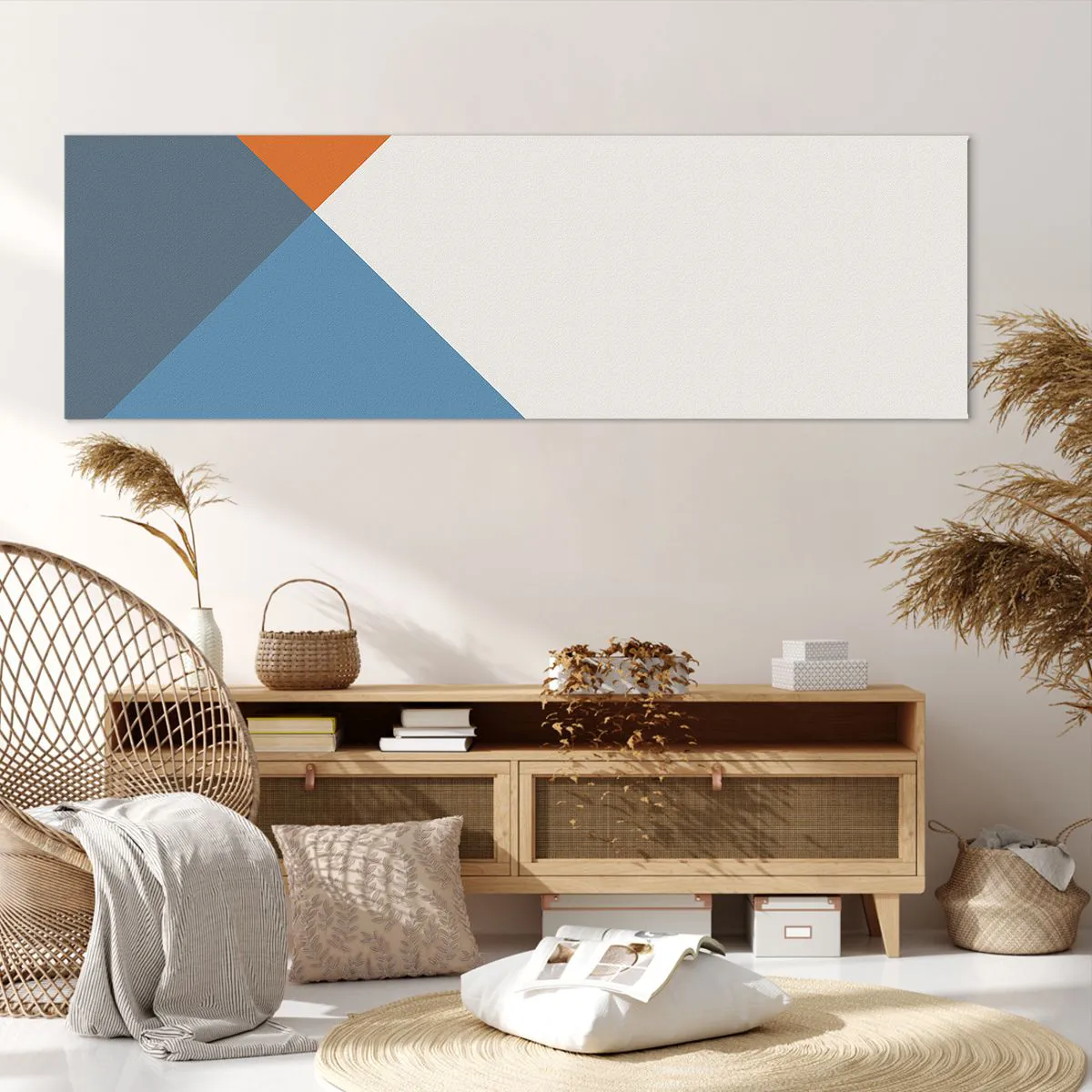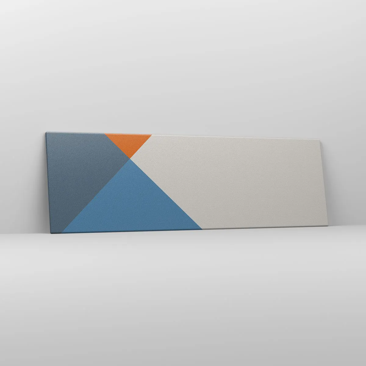 Impression sur toile - Image sur toile - Triangles géométriques dans les tons de bleu et d'orange - 160x50cm - Sous cette angle.... - Décoration murale moderne pour le salon et la chambre ARTTOR