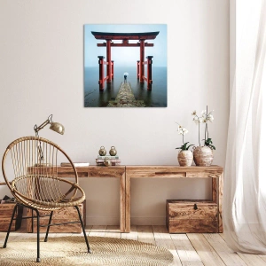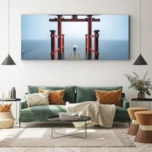 Impression sur toile - Image sur toile - Un portail torii surplombant un lac tranquille au Japon - 160x50cm - Rêverie japonnaise - Décoration murale moderne pour le salon et la chambre ARTTOR