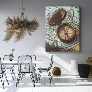 Le motif d'une boussole et d'une carte vintage est idéal pour ceux qui recherchent une décoration pleine de caractère et d'histoire. Ce tableau attire le regard et apporte une atmosphère d'aventure et de découverte à votre intérieur, devenant ainsi le point central de votre composition.